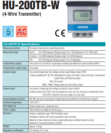 Catalog Máy đo độ đục online Horiba HU-200TB-W (Turbidity) đo dải rộng 0-4000NTU