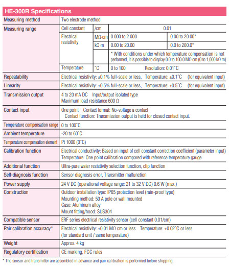 Thiết bị đo điện trở suất Online Horiba HE-300R hay còn gọi là máy đo điện trở suất Online, ứng dụng vào ngành công nghiệp hóa sinh, hóa chất.